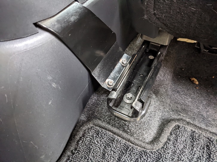純正品はシートレールに金具で固定とめちゃくちゃしっかりした取付方法と
