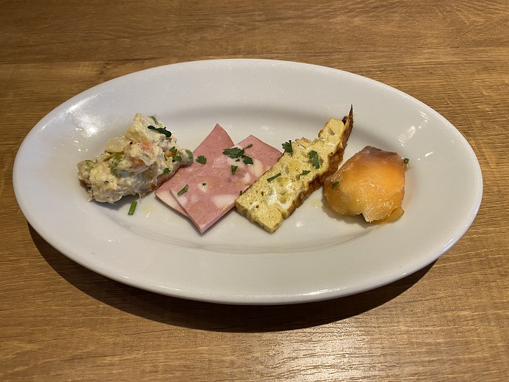 頂いたのはCコースの前菜盛り合わせ+パン+パスタ+メイン料理です