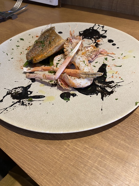 メインはあかざ海老グリルとクロホシフエダイのポワレに
