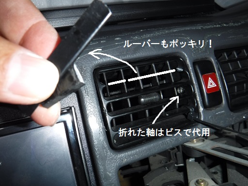 結局左側のエアコン吹き出し口の部分を外して(思いっきり軸部分を破損