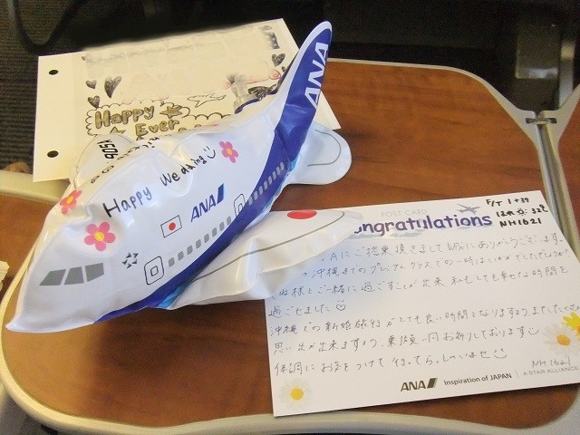 自分達の搭乗席にマークを入れてくれたANAのビニール風船とメッセージカード!