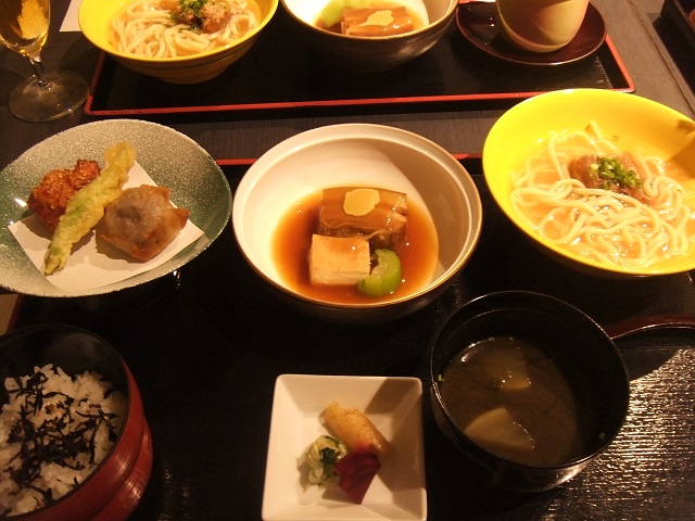 しゃぶしゃぶ三種盛りが非常に美味しく追加しちゃいました。〆の沖縄そばも