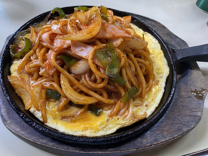 奥さんはナポリタンを注文、私は朝が遅かったので軽くミックスサンドとホットを