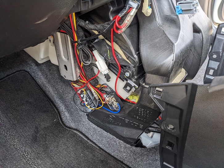 ソーラーのパネルから配線を助手席の足元まで引っぱってきました