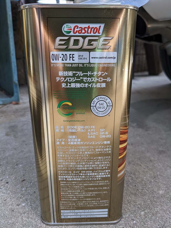今回使用したオイルはカストロール・エッジの0W-20の4L缶