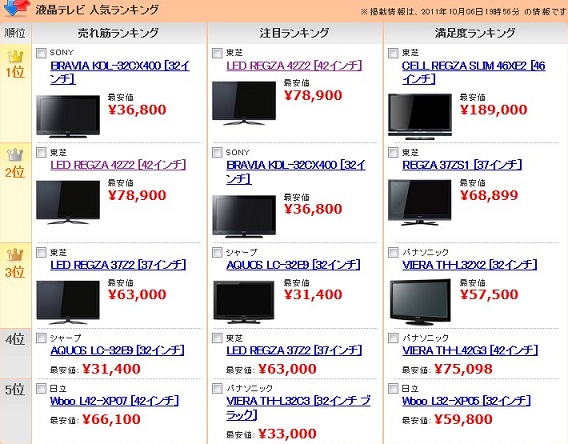 今回購入したTVの価格動向を見てると、ついに8万を切っちゃいました