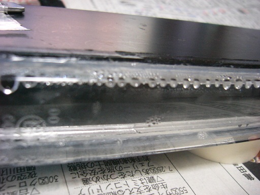 裏側のコーキング処理を施していた部分はネジ止め用の単なる穴のようで中とは繋がって