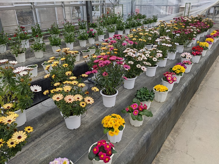 ハウス内は色とりどりの花がたくさんあって目を癒してくれます