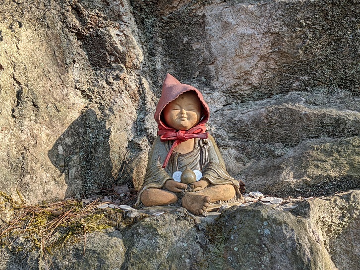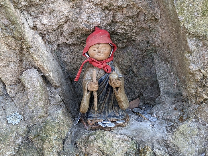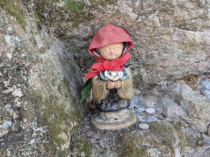登山道の壁に3体のお地蔵さんを発見!