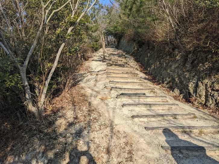 東側に比べ緩やかな斜度の整備された道が続きます