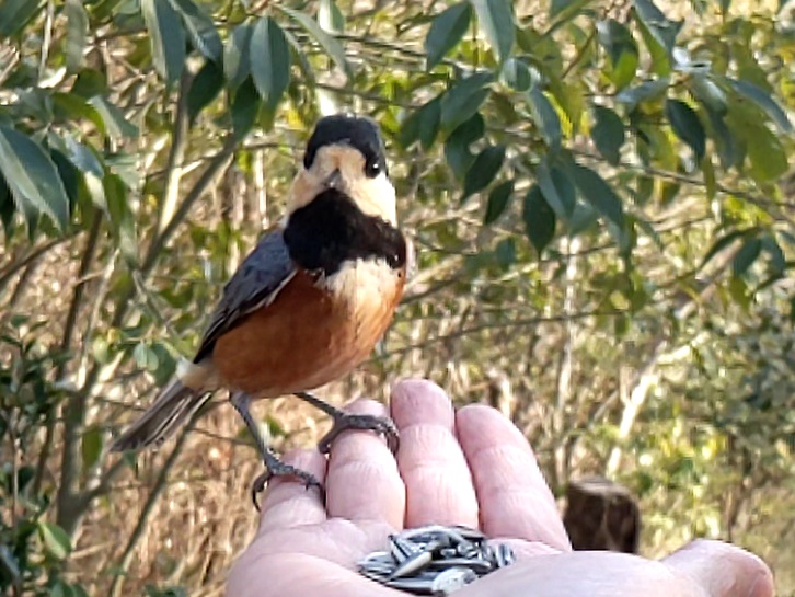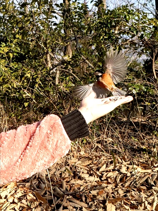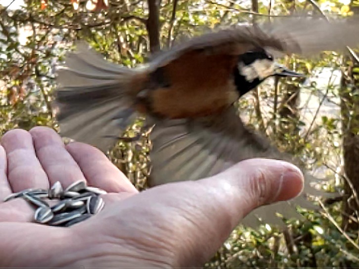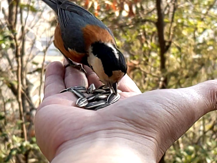 今回はヒマワリの種を持参したのでヤマガラさんにいっぱい食べてもらいました