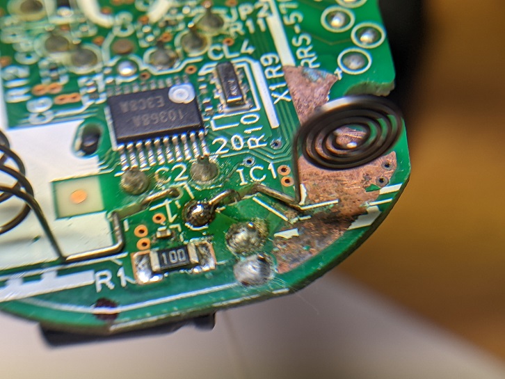 端子の交換は出来ましたが基板表面のコーティングは腐食により剥がれて