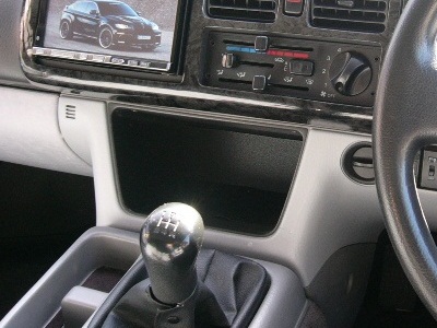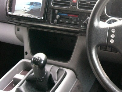 しかも、小物入れの奥にはナビの配線用の四角い穴がランダムに・・
