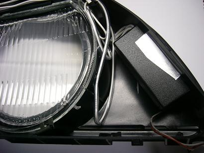 インバーターは説明書どおりヘッドライトカバー内へ両面テープで貼り付け。