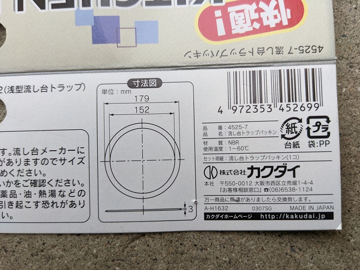 結局、排水部分の外径180mmでパッキンを探すとOKみたいだったので