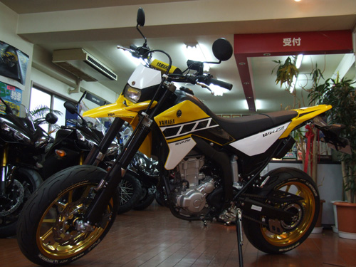 YSP新宿西さんのWR250Xカスタム。目新しい物は~?、あっ、ありました。ウィンカーがLED。よぉーく見て下さい。フロントフォークに巻きついております。「新発想~!!」