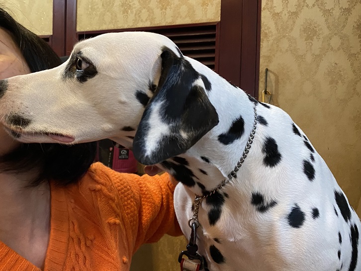 アンヌちゃんは奥さんの顔をペロペロ