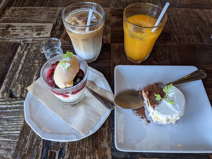 ドリンクにマンゴージュースとアイスカフェラテ