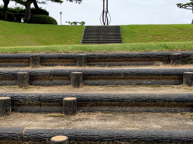 駐車場から降りてすぐの芝生を上った先に