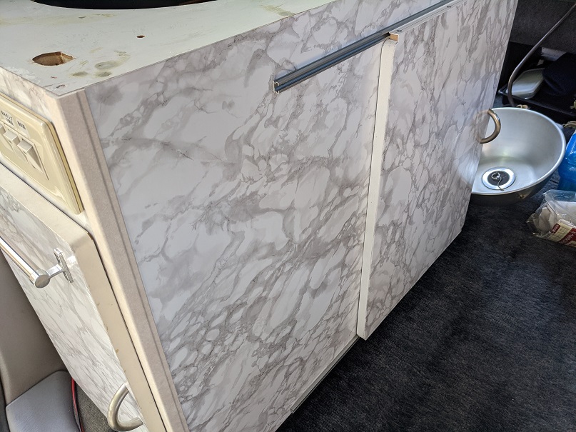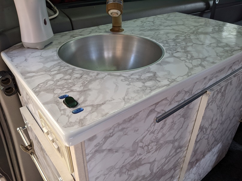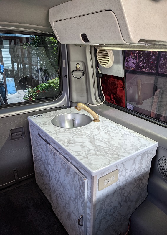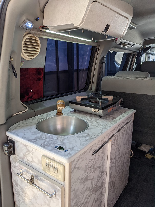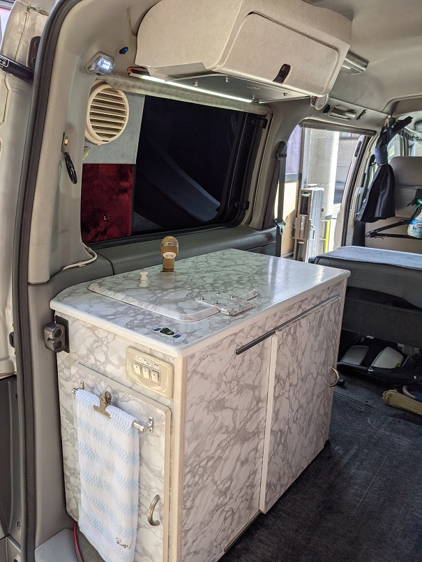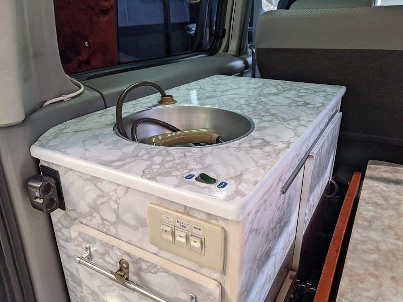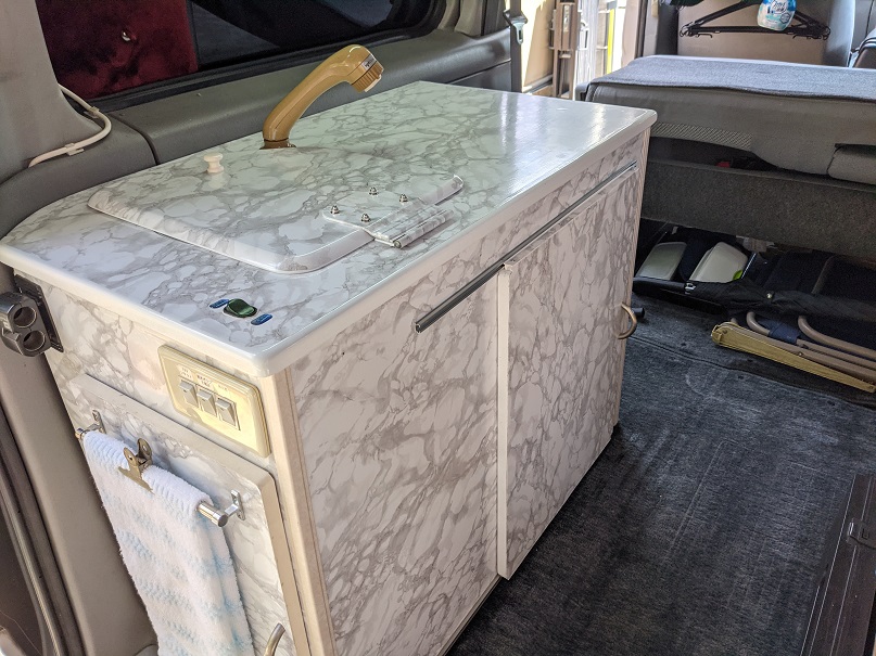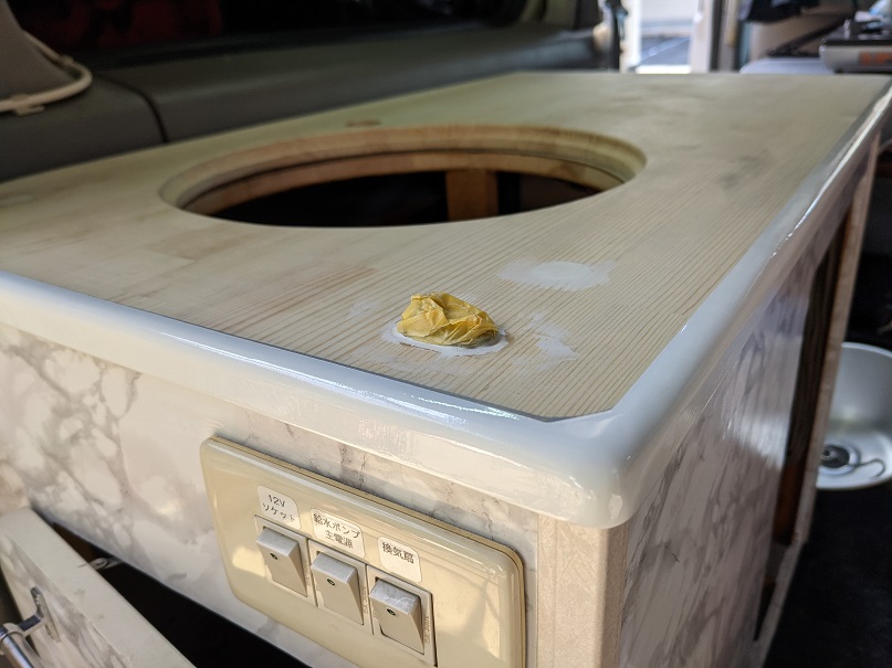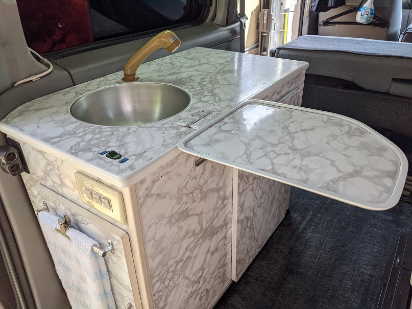 外してしまった折りたたみ棚の代わりにシンクのフタと小テーブルを兼用して製作