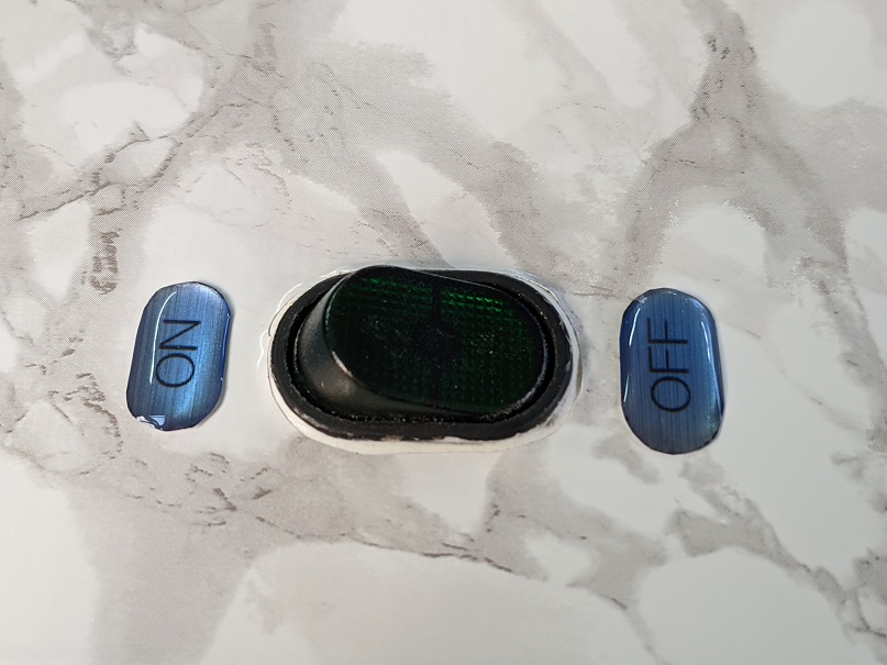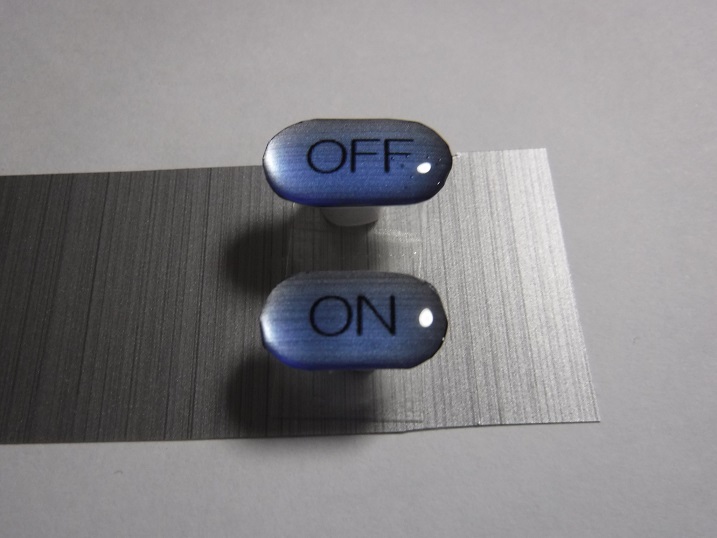 ここで蛇口スイッチのON/OFF表記ラベルを思いついたので製作します