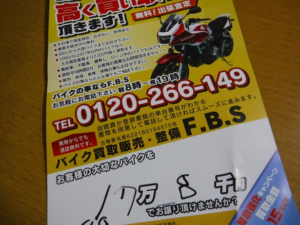 あら、チラシには不動車・鍵なし・ローン中のバイクも買い取りOK・・