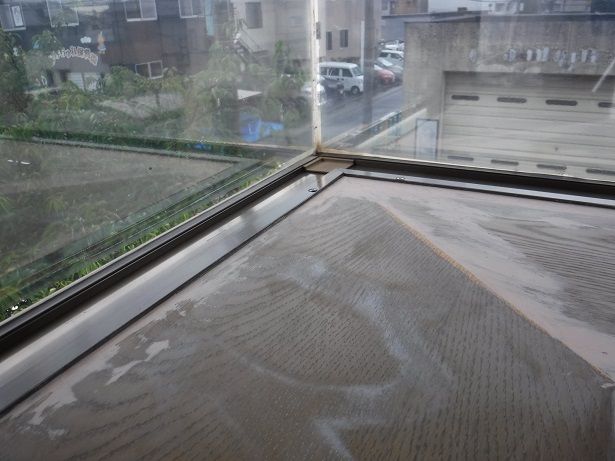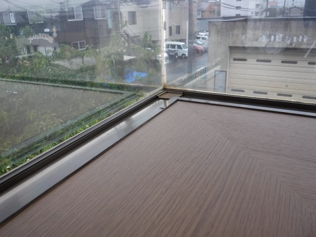 まずは劣化したベランダの人工芝の撤去と床のひび割れの補修と塗装