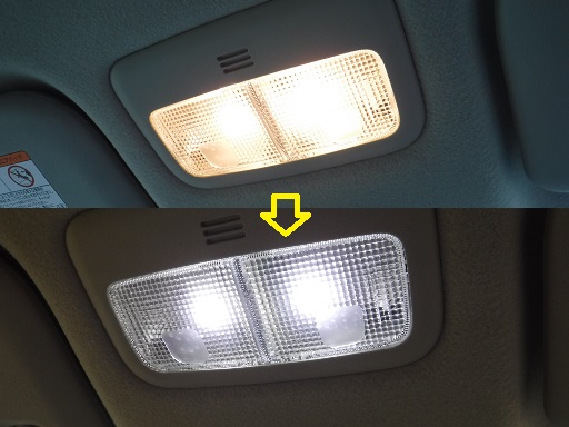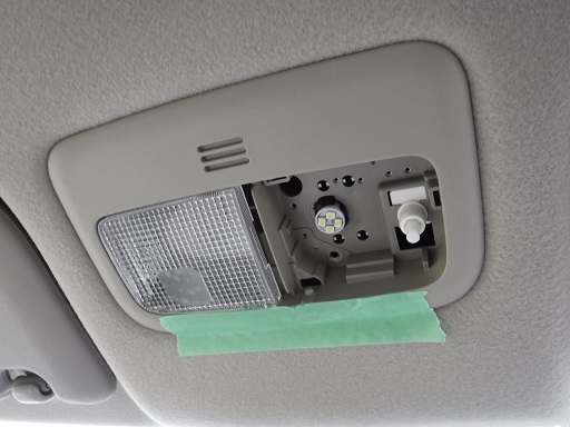 まずは前席の頭上にあるマップランプへ手持ちのLEDを・・