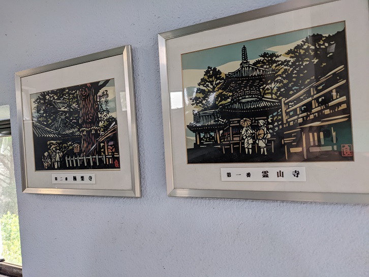 壁には四国霊場八十八カ所の切り絵が一番札所から展示されてます