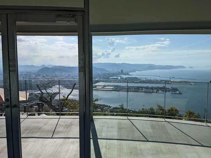 室内空間は空調も効いてて涼しく高松市街を眼下に眺望できます