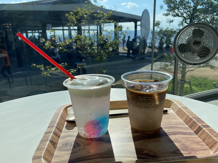 ちょっとしたカフェスペースもありサイダーとカフェラテを頂きました