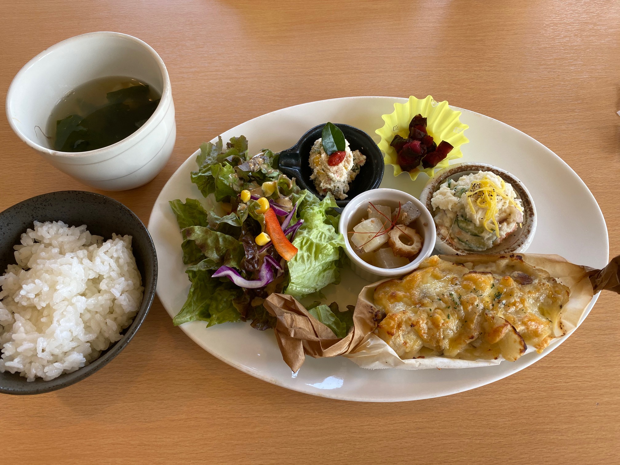 奥さんのメインはお魚と旬野菜のロースト 軽いスダチのソース キタアカリポテトのピューレ添え