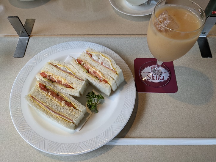 私はお腹があまり減ってなくてミックスサンドと桃ジュース