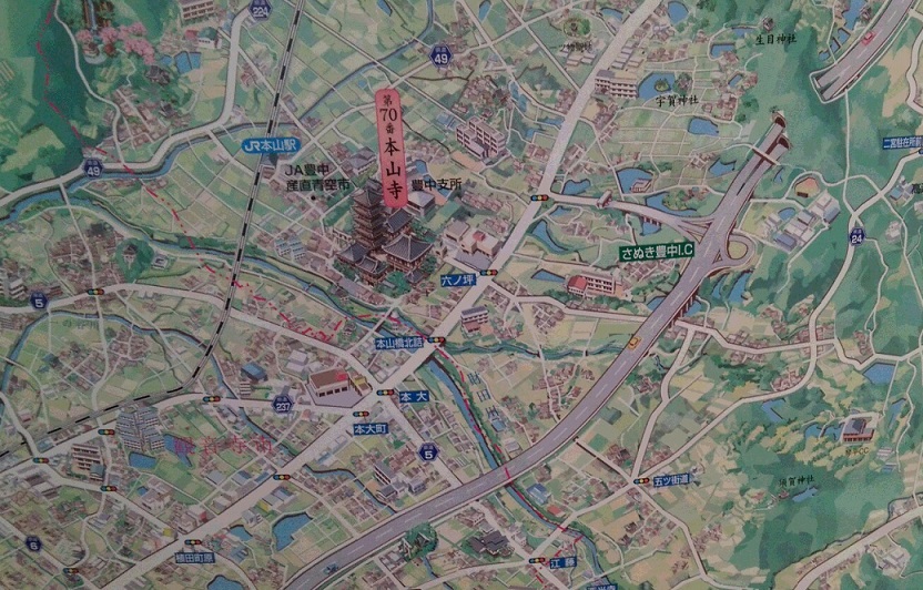 水の資料館の中の柱に貼ってあった三豊市の地図がすばらしく