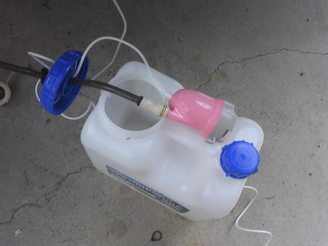 使用していたバスポンプは通常ポリタンクのキャップ部分からは入らないので