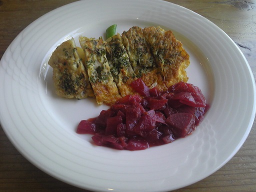 豚肉のハーブピカタ新じゃがとビーツ・トマトソース