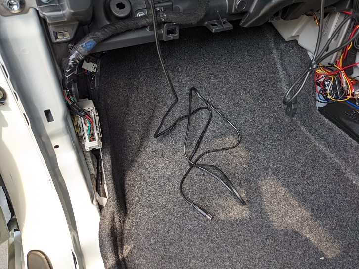 ソーラーのパネルから配線を助手席の足元まで引っぱってきました