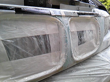 グリルにも惜しみなくパテを盛り盛り~補修個所の厚みが変わった分、