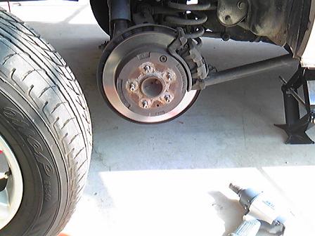 ナットを緩めるだけなら一瞬で作業終了。ただジャッキアップと重たい鉄ッチンホイールを外したハブに仮止めして・・・