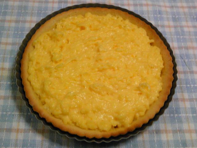 とりあえず急いでタルト生地の上に乗せたものの・・・やはりデコボコ