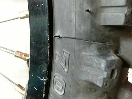苦労して交換したタイヤを見るとなんと亀裂が・・前から少し入っとったんが成長しとる。
