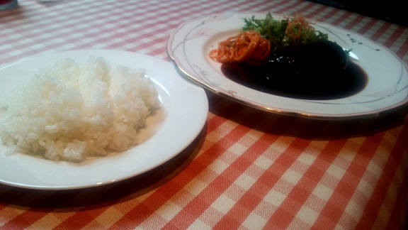 評判通りハンバーグはデミグラスソースも濃厚で美味しかったです