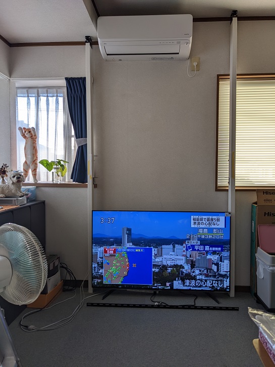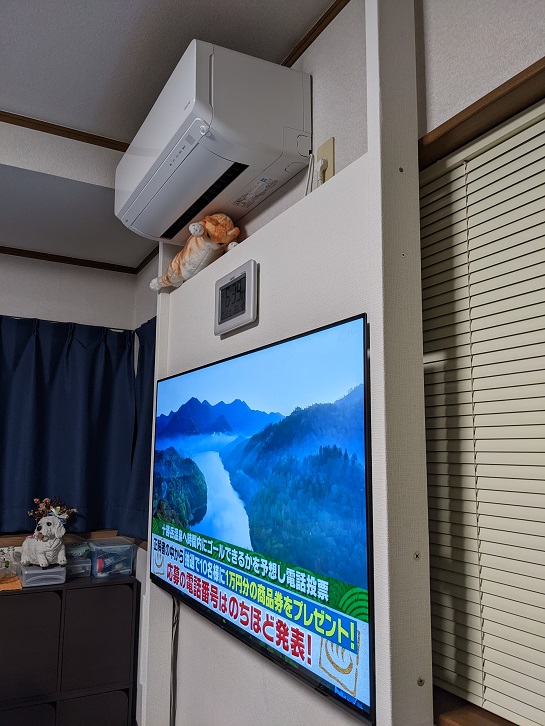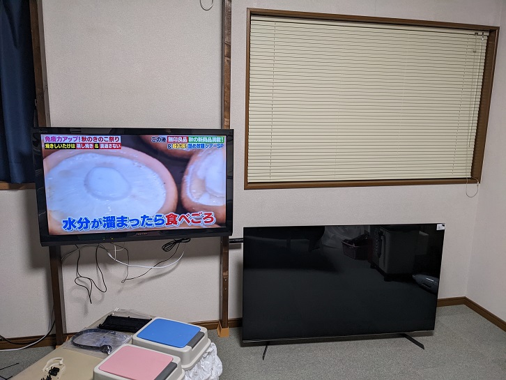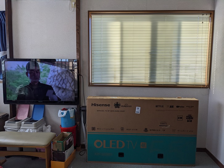 今までのTVを撤去~!! 新しい有機ELパネルは画面がくっきりキレイです